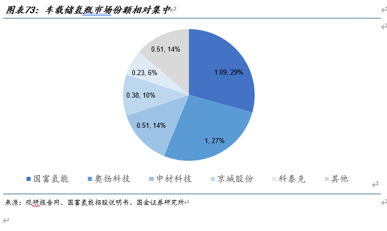 车载高压储氢瓶行业市场份额相对集中,重点关注高市占率企业。2020-2024年前三大厂商市占率达到70%左右,市场集中度相对较高,头部企业最受益于燃料电池汽车需求爆发。