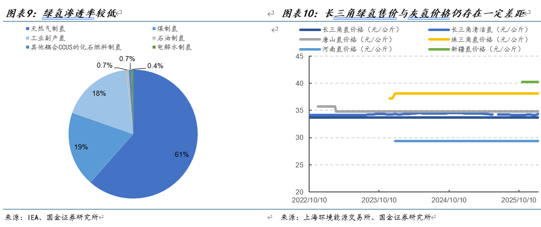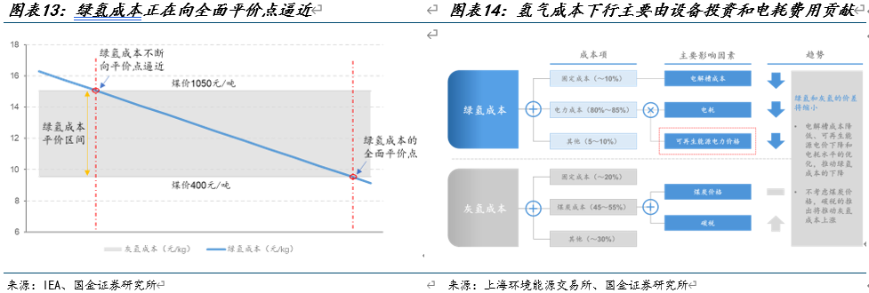 从绿氢经济性看,便宜且绿色的电和设备的长时稳定运行是达成平价的关键。绿氢使用的终极目标是为获取零碳且低成本的能源和原料,随着降碳相关政策落地以及新能源设备成本下降,绿氢有望逐步获得经济性。