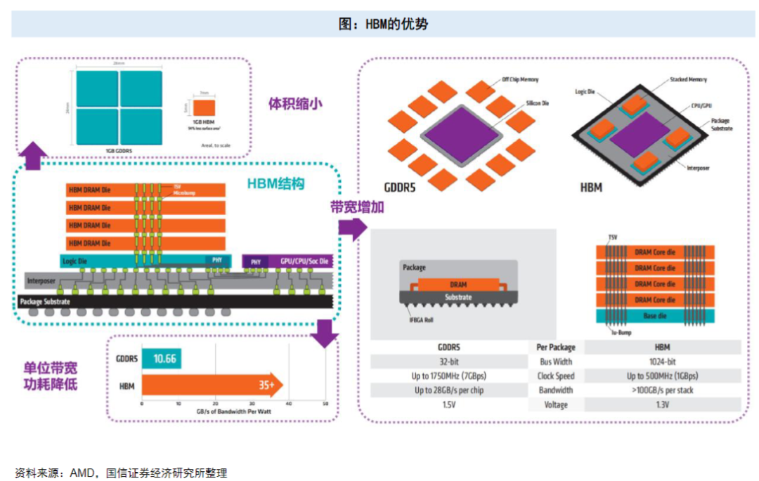 HBM的核心优势主要体现在带宽、功耗与空间三大维度。