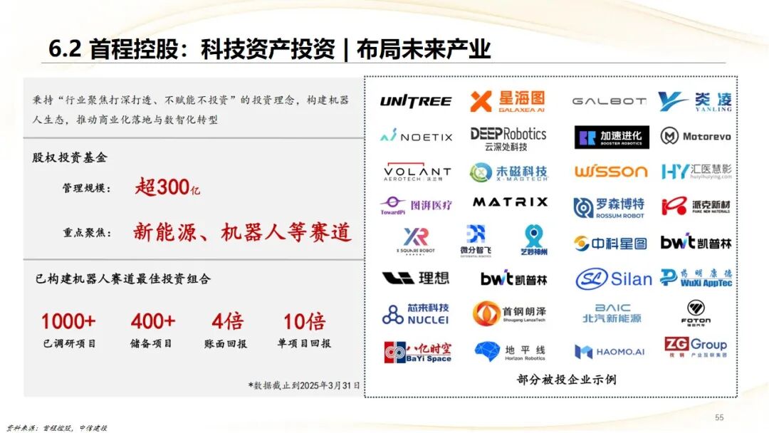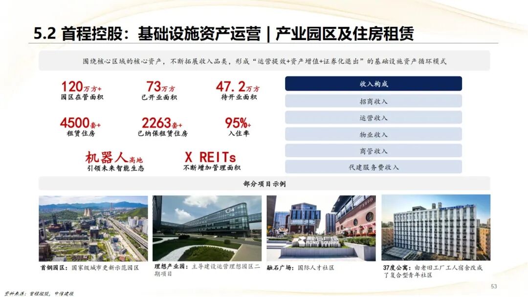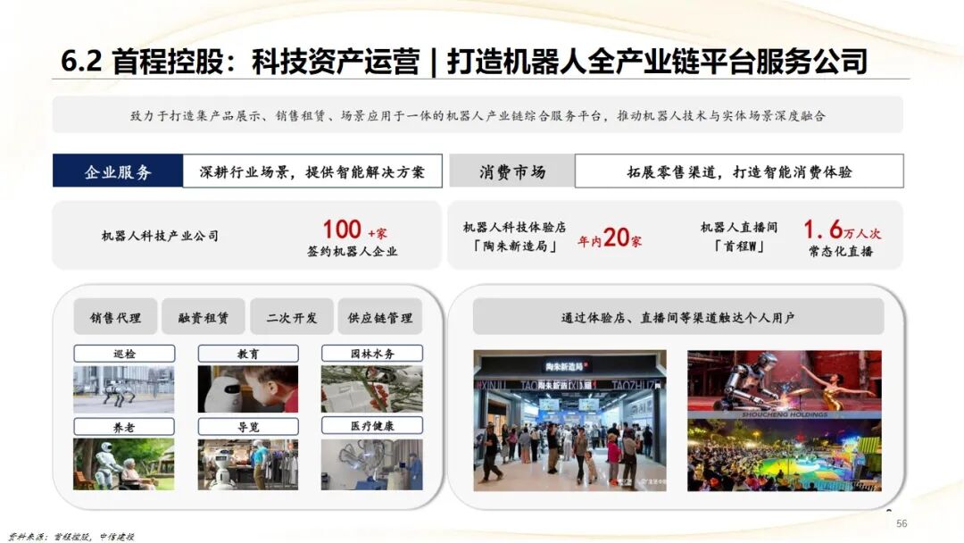 首程控股:从传统钢铁转型为智能基础设施资产服务商,形成了“停车资产管理、产业园区运营、REITs投资、股权投资”四大板块,并前瞻性布局机器人产业,打造“基础设施 科技”双增长曲线