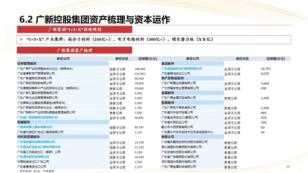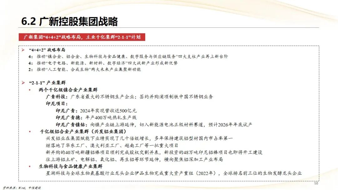 广新集团:从外贸企业成功转型为以制造业为主的国有资本投资公司,通过“4 4 2”战略布局和“1 3 X”资产组合,聚焦并打造了镍合金、铝合金等千亿级产业集群,展示了通过资本运作培育壮大核心产业的能力