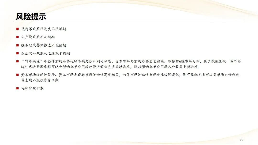 “对等关税”等全球宏观经济运转不确定性加剧的风险。资本市场与宏观经济息息相关,以当前A股市场为例,美国政策变化、海外经济体衰退等因素都可能会影响上市公司海外资产的业务及业绩表现,进而影响上市公司收入和设备更新进度