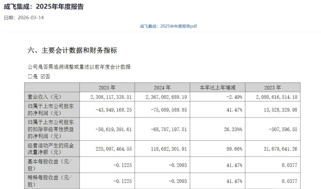 尽管交出了一份全年亏损的“成绩单”,但成飞集成(002190)2025年的经营状况已经开始有所改善。