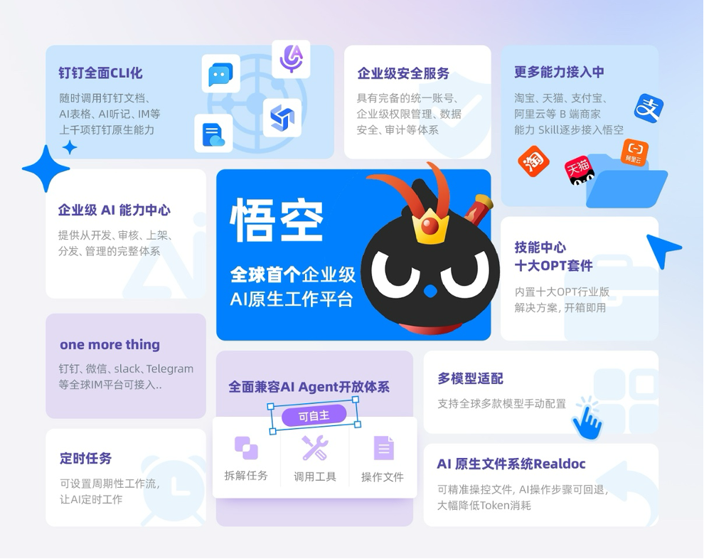过去是人用钉钉来工作,未来是AI用钉钉来工作。和市面上所有的龙虾Agent不一样,「悟空」天然就长在企业组织中,可以在真实的企业环境中安全使用