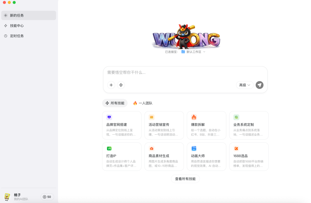 更直白讲,「悟空」是一个能动手干活的AI工作平台。