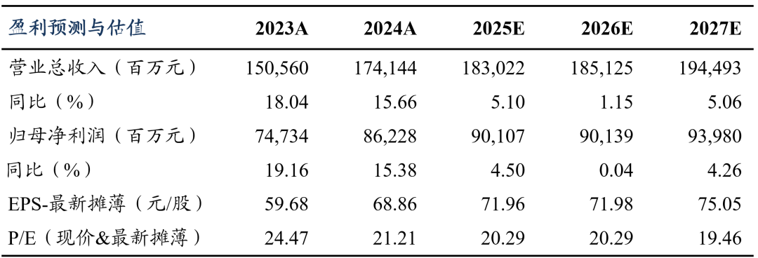 改革力度空前,全面向C而行。代售模式下,客户须通过扫描专卖店专属的i茅台二维码按统一零售价进行购酒,专卖店经销商可相应获得5%佣金。非标产品销售模式的全面调整,是公司彻底转向2C营销思维的又一体现。此前茅台酒的强品牌力,主要来自党政军企(主要是传统行业企业)等体系的KOL认可(本质上是to B团购生意)。而本次改革公司以i茅台平台广泛对接C端消费者,以便更全面、更深入触达民间消费客群;同时借助i茅台丰富产品定制、直播互动、即时零售等新业态,可以更好实现从“卖酒”到“卖生活方式”的充分转型。 渠道端,缩短2C链条,精确按需供货。代售模式下,产品物权不发生转移,直接根据C端客户下单出货,既减轻经销商库存压力,也便于公司更好掌握各类渠道的真实销售。公司要求“当经销商库存低于初始库存的30%时,可以申请补货”,“连续2个月未申请补货、刷单造假、产品外流的,将终止该产品的代售合作”,黄牛党、二批商空间将大为压缩,专卖店经销商的客群对接能力将得到直观体现,实现“能者多卖、平者少卖、庸者不卖”。 商家端,固定佣金模式下,厂商关系发生根本性转变。此前顺价经销模式下,茅台的强渠道议价权,来自其渠道价差的快速放大,经销商注意力更多放在价差波动上。固定佣金模式下,公司转向以稳定的渠道利润及库存预期,驱动经销商着眼长期客户培育及资源对接,提供更优质的品牌服务,多卖才可多得。 价格端,强化C端价格掌控,长期意义深远。短期来看,公司以零售指导价(高于原定经销商打款价)对外销售非标产品,报表吨价预计好于此前预期,一定程度上或可帮助公司缓解稳业绩、放销量的压力。长期来看,公司以统一零售价进行2C销售,便于未来可实时调节消费者到手价格,从而建立相对平稳、随行就市、动态调整的价格机制。 盈利预测与投资评级:非标代售模式的推行,意味着茅台全面向C更进一步,为公司加强价格掌控及营销转型打好基础,也将倒逼经销商经营模式跟随转型,商业模式变化意义深远。我们维持2025~2027年归母净利预测为901、901、940亿元,同比 4.5%、 0.0%、 4.3%,当前市值对应PE为20、20、19x,维持“买入”评级。 风险提示:高档消费不及预期,场景企稳不及预期,白酒价格波动过 |
