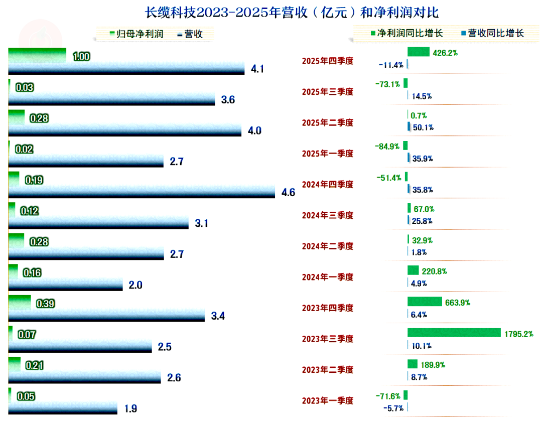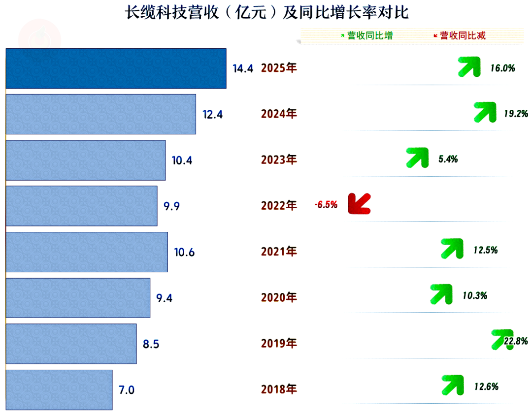 2025年,长缆科技的营收同比增长16%,这是其连续三年保持增长状态了,最近两年的增速还不错,也在连续刷新营收新纪录。