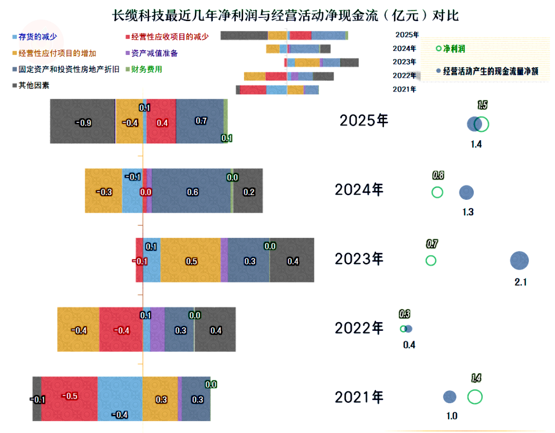 应收、应付和存货对经营活动现金流的影响并无明显的规律,长缆科技已经过了需要大量垫入运营资金的阶段,除非后续营收重新快速增长。