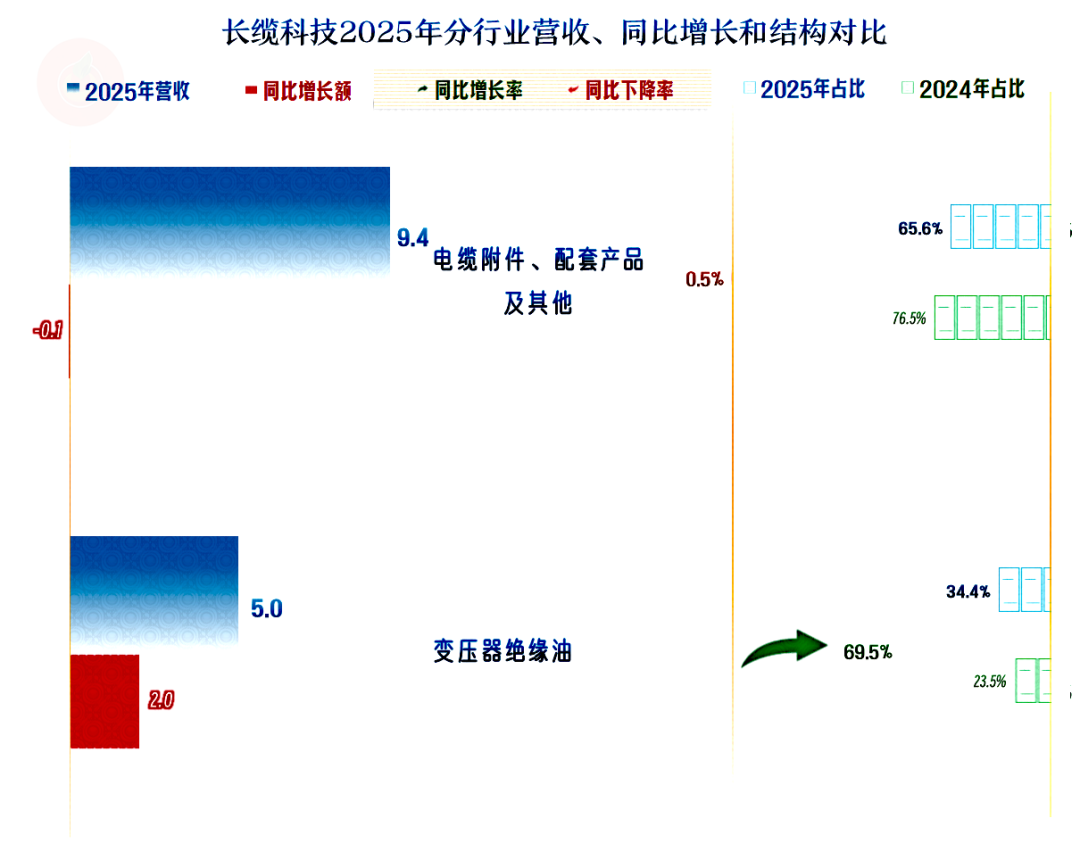 “ 电缆附件、配套产品及其他”业务同比微跌,主要的增长来自于“变压器绝缘油”业务,营收结构上也有一定的变化。
