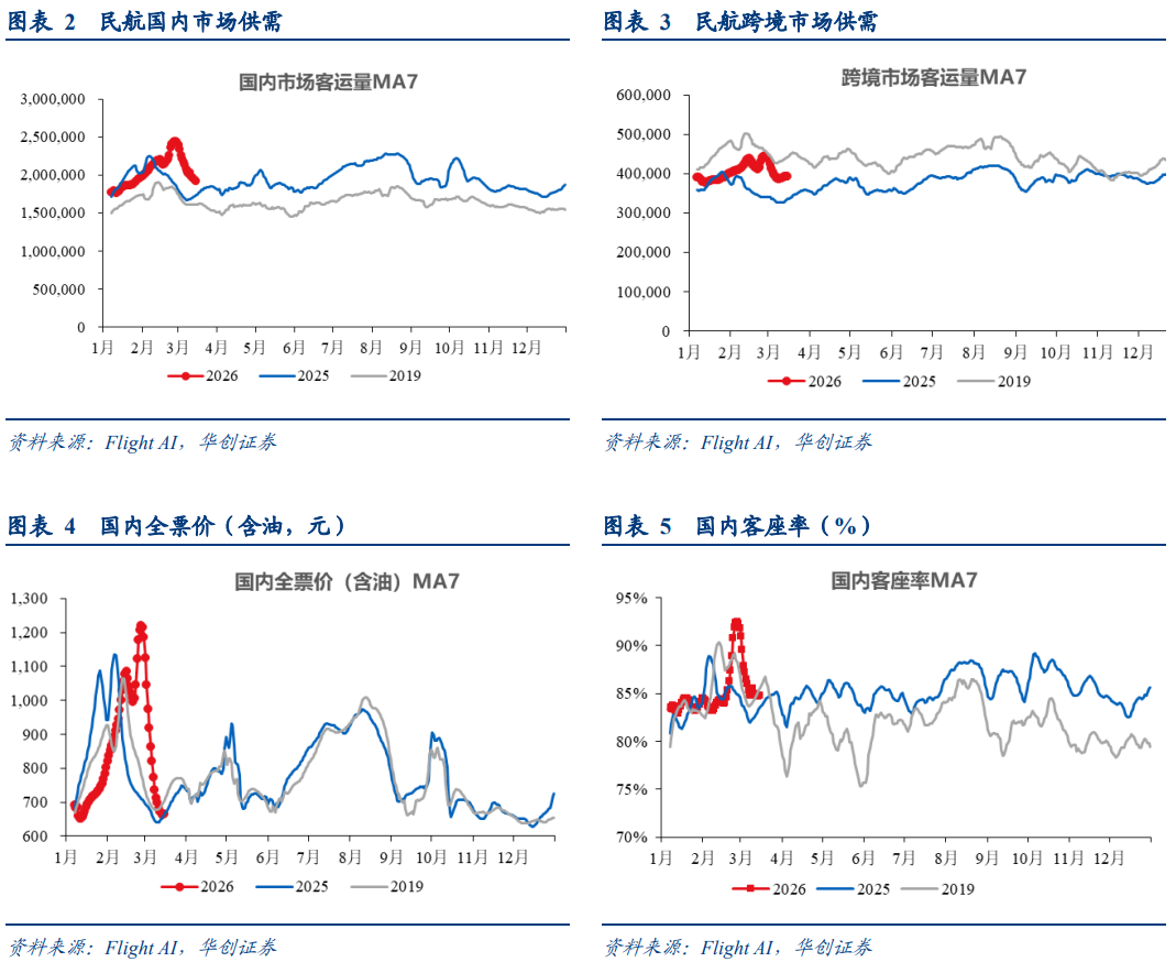 投资建议:继续推荐航空板块机会:短期:油价上升导致股价调整,但高油价预计较难维系很长时间,对27年业绩预期不产生负面影响。中长期维度中,供给端硬核制约,高客座率有望推动价格弹性持续释放。重点推荐:看好中国国航、南方航空、中国东航三大航弹性释放;继续看好国内支线市场龙头华夏航空,迎来可持续经营拐点;看好低成本航空龙头春秋航空,凭借低成本核心竞争力,将“流量-成本-价格”发挥到极致;看好宽体机高效运营有望助力吉祥航空弹性释放。