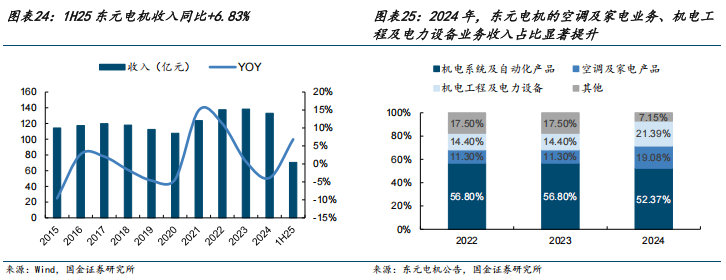 2018-2024年公司收入从7.53亿元提升到9.27亿元,CAGR为3.53%,归母净利润保持在0.52-0.77亿元之间,CAGR为-0.32%。1H25公司实现营业收入3.40亿元,同比-32.27%,1H25收入下滑主要系暖通产品部分订单的收入确认时间较原计划有所延期所致。受非流动性资产处置损益和政府补助等影响,公司1H25实现非经常性损益4.16亿元,实现归母净利润3.89亿元,同比 904.10%。