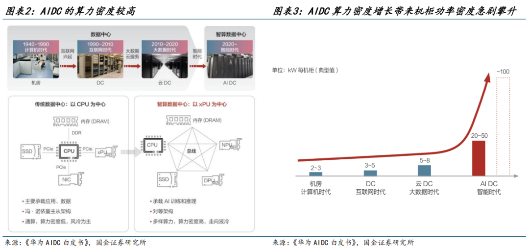 一、AIDC机柜算力密度升级,推升高性能散热需求