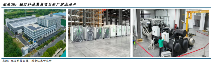 磁悬浮流体设备生产建设项目顺利投产,助推业务增长。根据公司2025年6月19日官微,公司募投项目“高效智能一体化磁悬浮流体设备生产建设项目”已于今年6月投资建设完成并顺利投产。募投项目新厂区配备先进的生产车间、实验室及智能化立体仓库等设施,将进一步提升公司规模化、工业化的生产能力。本次募投项目新厂区主要用于磁悬浮空气压缩机、磁悬浮冷水机组等公司高增长新产品的产能提升,项目完全达产后将实现年产1000台套设备产能,有效提升现有产能1倍,可极大满足公司磁悬浮压缩机相关产品业绩高速增长需求。目前公司正在积极推进新厂区投产后的产能爬坡。