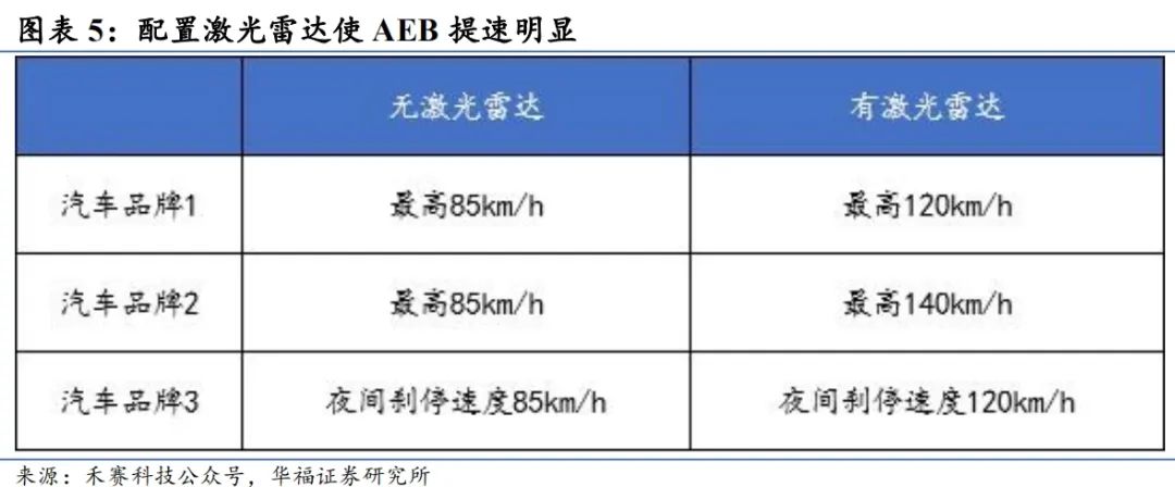 基于激光雷达的底层技术原理,在自动驾驶最棘手的极限场景中,如动态目标的识别、恶劣天气的穿透力、抗干扰能力等方面,激光雷达展现出绝对的优势。因此,激光雷达能够在汽车AEB(Autonomous Emergency Braking,自动紧急刹车系统)功能方面,起到关键作用。