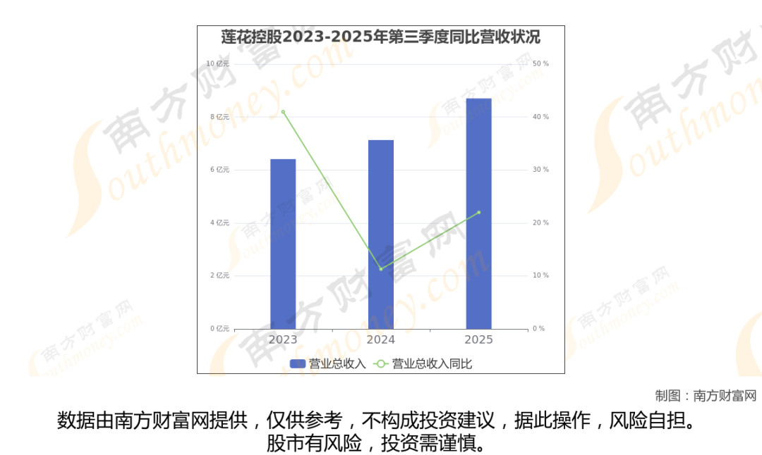 在2025年第三季度,莲花控股的业绩表现(如上图),主营业务收入达到8.7亿元,实现了21.99%的同比增长率。