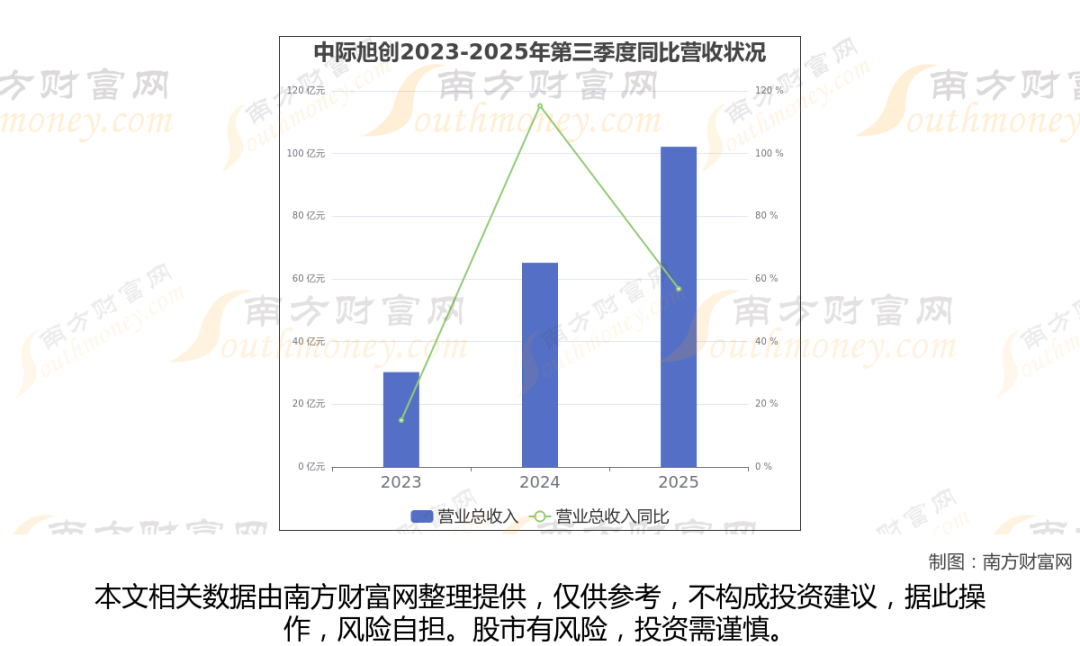 中际旭创披露了2025年第三季度财报。报告显示(如上图),中际旭创2025年第三季度实现营收102.16亿元,同比56.83%。
