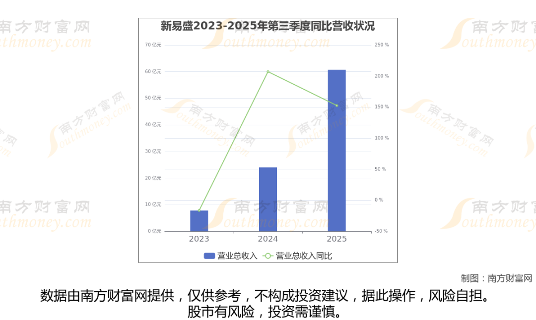 新易盛披露了2025年第三季度财报。报告显示(如上图),新易盛2025年第三季度实现营收60.68亿元,同比152.53%。