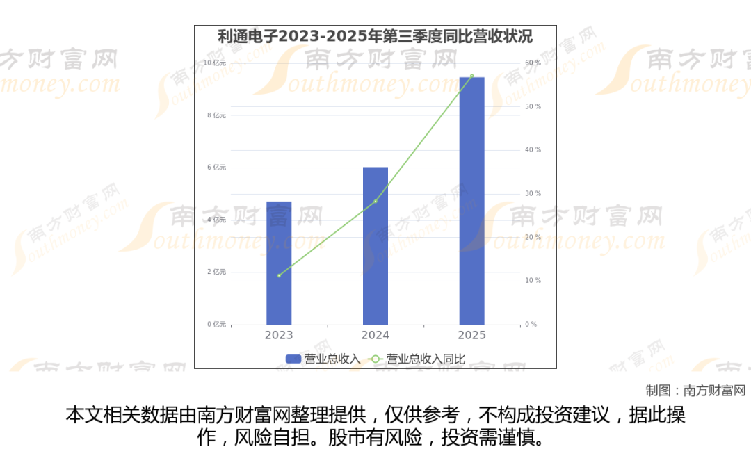 (如上图)利通电子披露2025年第三季度报告,报告期实现营收9.46亿元,同比57.09%。