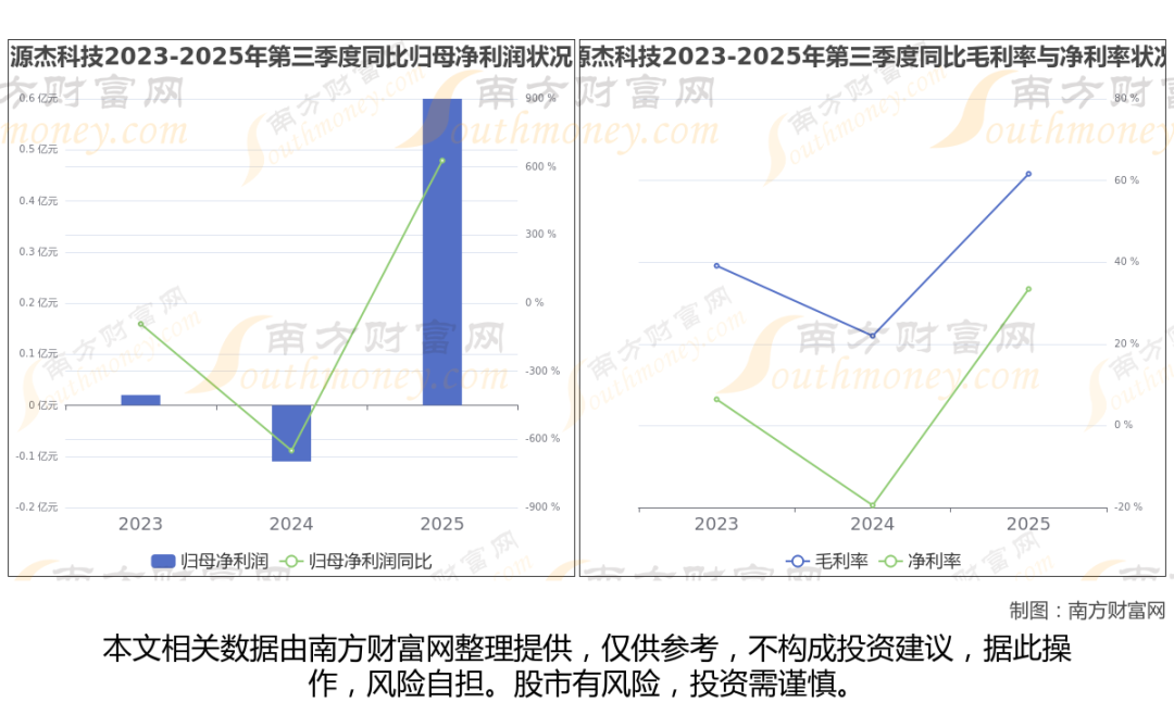 公司2025年第三季度季报显示,源杰科技实现净利润5962.89万,同比增长627.62%;毛利润为1.1亿,毛利率61.62%。