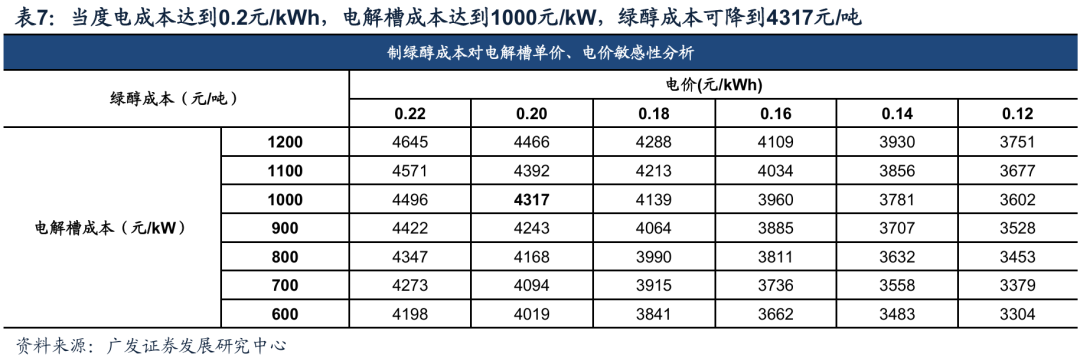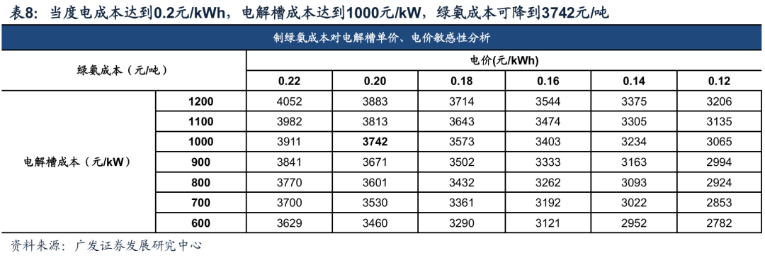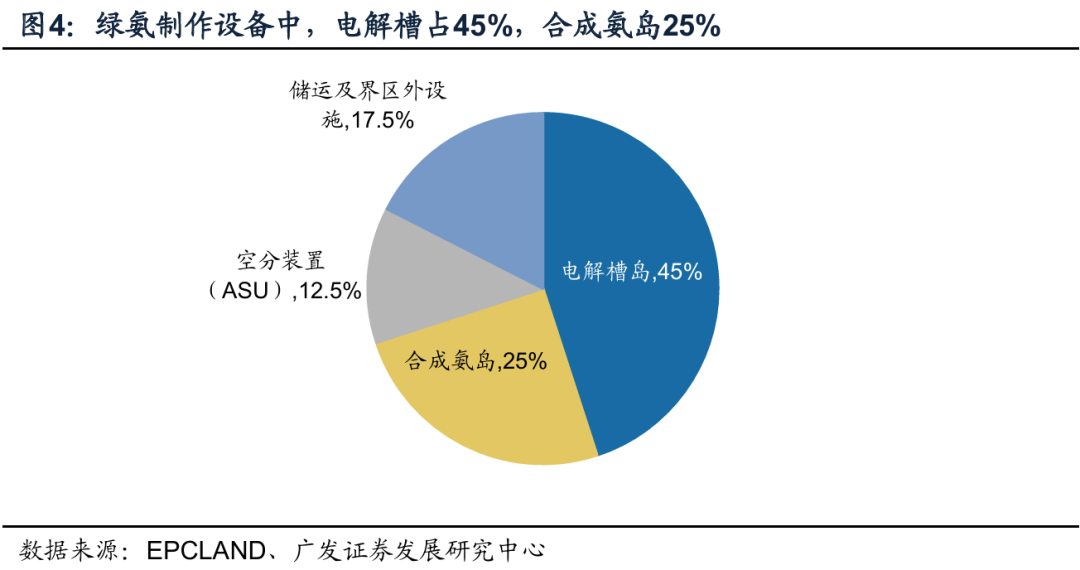(二)成本拆分:绿氨醇主要成本为绿氢,装置支出近一半为电解槽
