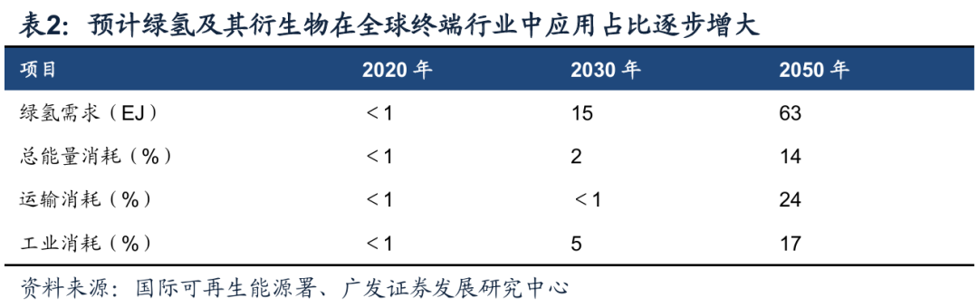 氢气运输储存难度大,通常通过下游制备氨醇后再利用。氢气在常温常压下是气态,能量密度极低,运输成本高,且储存难度大,需通过氨、甲醇等载体将氢商品化。氨:氨比氢气更容易液化,且同体积的液氨比液氢多至少60%的氢;且储运基础设施完善,运输成本低。甲醇:是常温常压下的液体,其体积能量密度远高于气态氢和液态氢;并且由于其液态属性,甲醇可以利用现有的成品油管道、油罐车、油轮等基础设施进行运输,无需大规模新建专用设施。根据国际可再生能源署,到2050年,以绿色商品形式(绿氨、绿醇等)进行的贸易将占预计等量绿色氢贸易总量的73%至80%。