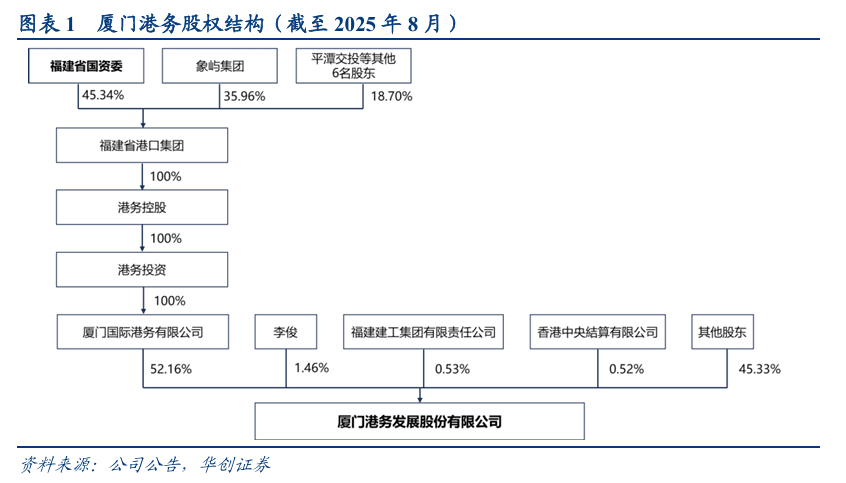 公司控股股东为厦门国际港务有限公司,截至2025年8月,持有公司52.16%的股份,因福建省港口资源整合,公司间接控股股东港务控股集团成建制并入福建省国资委组建的福建省港口集团。2021年2月,公司实际控制人由厦门市国资委变更为福建省国资委。