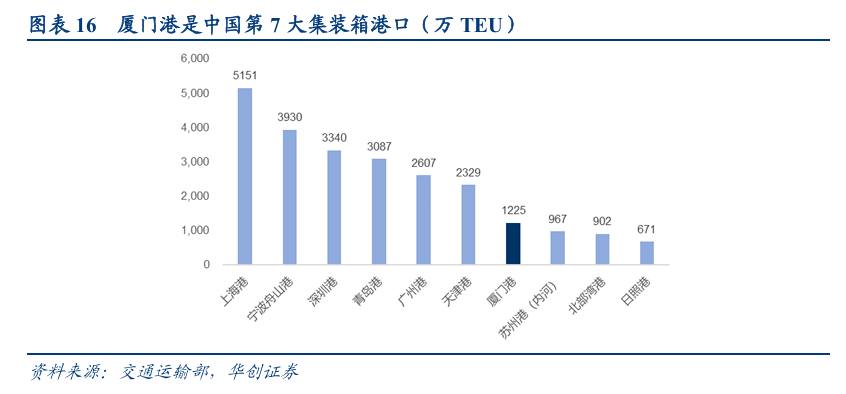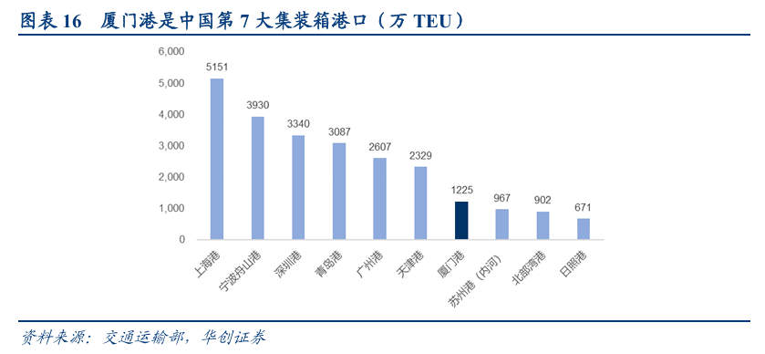 厦门港对台地理位置优势显著,将受益于两岸融合发展。