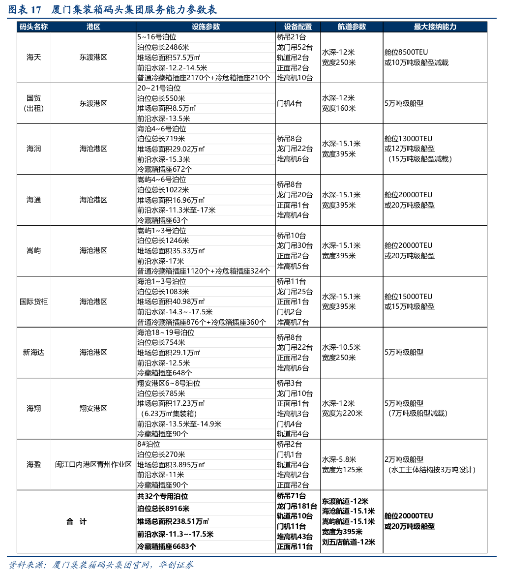 注:公司厦门港外码头资源包括石狮市华锦码头、潮州市小红山码头、漳州市古雷港区北1#-2#泊位。