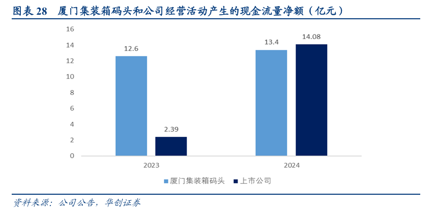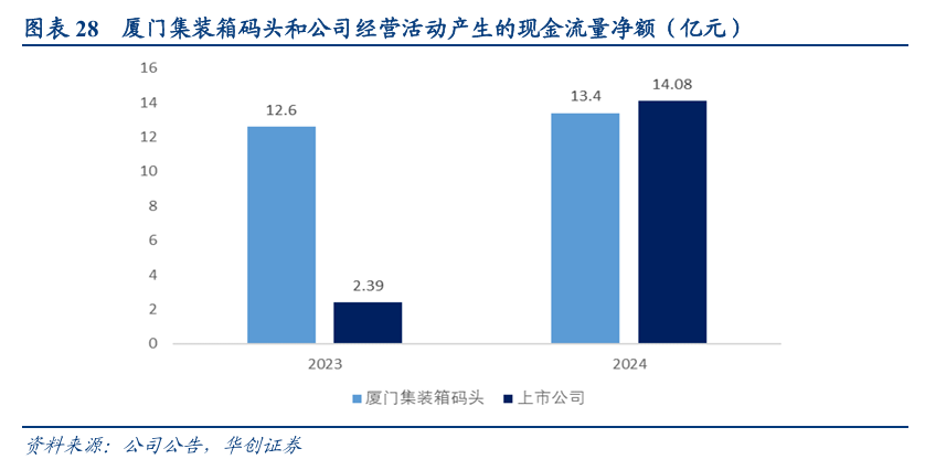 2023、2024年厦门集装箱码头经营活动产生的现金流量净额分别为12.6、13.4亿元,并购整合后公司整体的经营性现金净流量将加强。