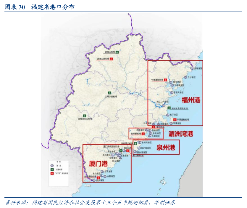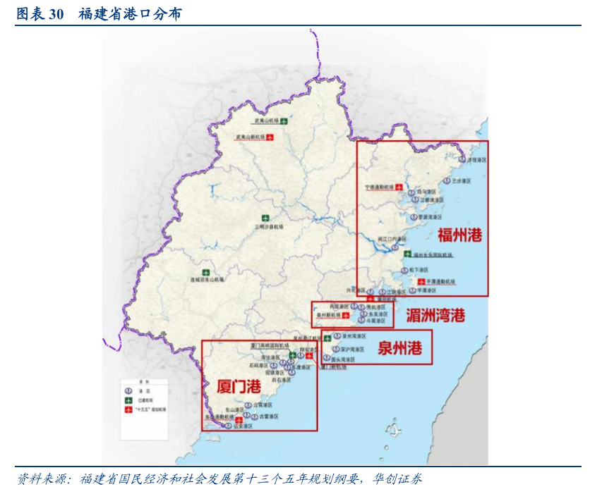 2021年1月,福建省政府印发《福建省沿海港口布局规划(2020~2035 年)》,明确全省沿海港口由厦门港、福州港、湄洲湾港、泉州港四个港口组成,并以福州港、厦门港为全国沿海主要港口,其它港口为地区性重要港口,分工合作、协调发展。