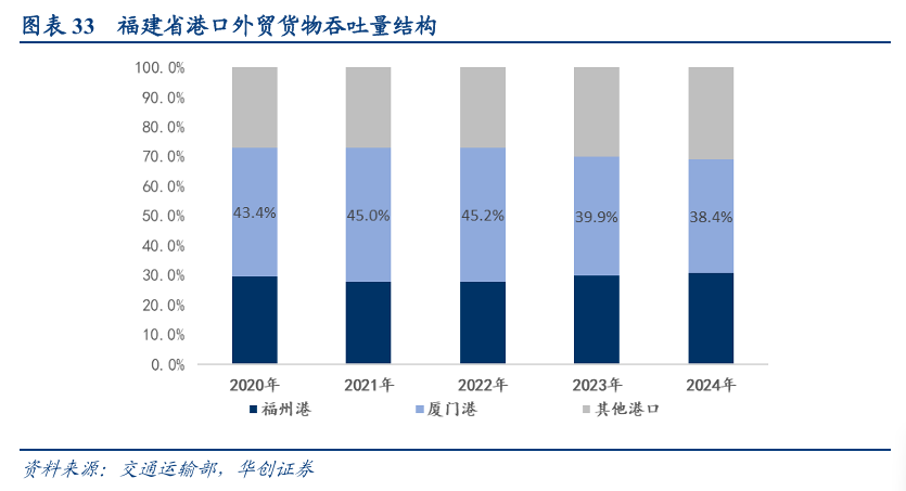 福建省港口分工清晰,通过发挥福建省内其他港口喂给港的支持作用,持续巩固提升厦门港国际集装箱干线枢纽港地位,厦门港具备长期竞争力。