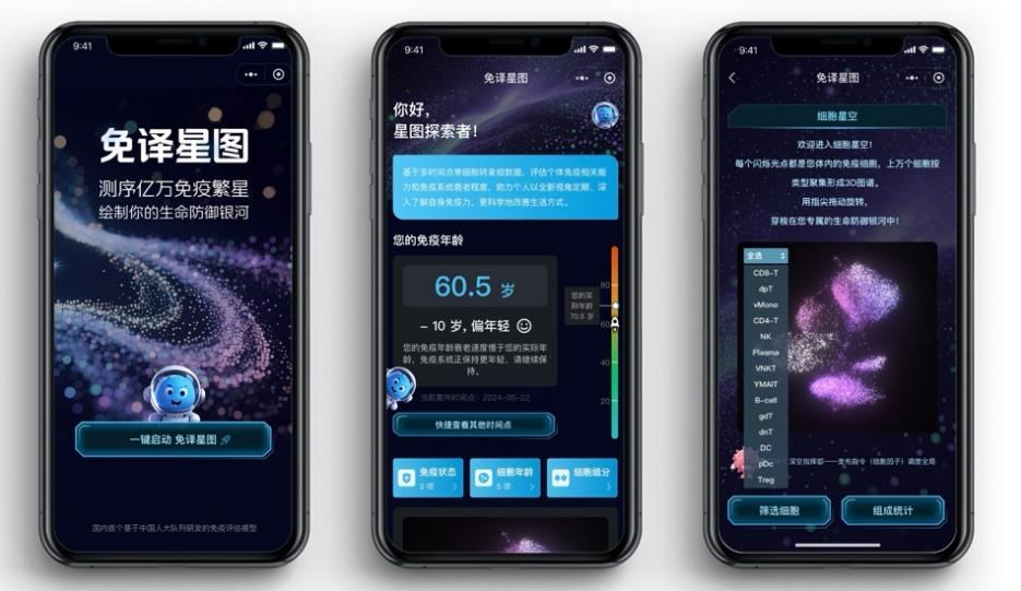 科研的最终目的是为了造福。目前,该系统性研究框架及产生的高质量数据,已推动创新孵化。基于此研发的华大细胞“免译星图”AI评估模型,能对个体免疫状态进行高精度、全方位的评估,真正实现了从前沿科研成果到可及健康产品的有效转化。