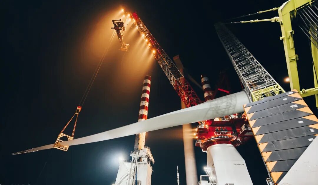 面对生产周期紧、海上作业环境复杂等诸多挑战,项目团队围绕机组交付和吊装目标,科学规划整体方案,结合海上风电设备运输、安装的特殊性,制定分阶段、分节点的执行计划;在生产环节,严格把控零部件采购、机组组装、质量检测等每一道工序,建立全流程质量追溯体系;在运输环节,提前研判海洋气象、港口调度等因素,合理规划运输航线与装船流程;在吊装环节,精准调配海上施工设备,实时把控海上吊装作业安全与进度,各环节有序组织、高效协同,确保了首台机组按节点完成吊装,受到业主高度肯定。