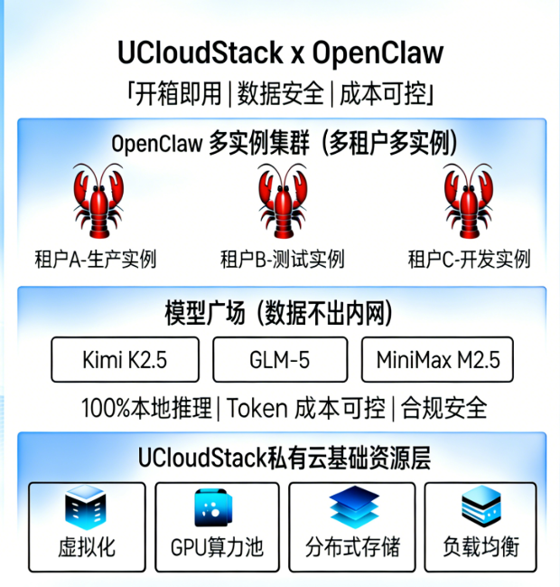 为了应对这些挑战,优刻得私有云UCloudStack为OpenClaw建立了一套纯本地化、私有化的部署架构。