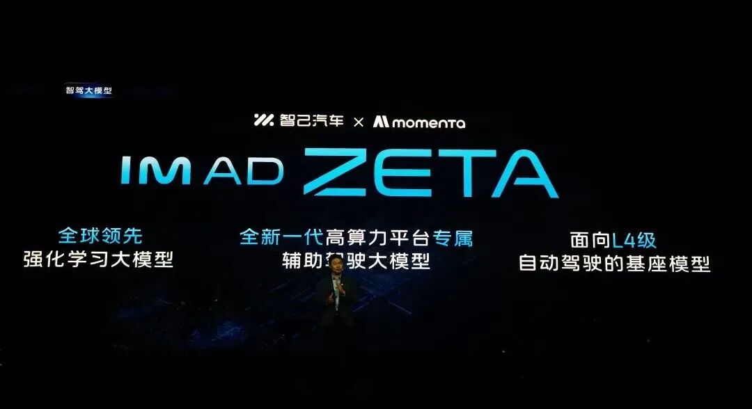 在智驾方面,智己与Momenta深度合作推出IM AD ZETA智驾系统,搭载最新一代强化学习大模型,其性能上限较现有大模型最多提升20倍,作为面向L4级自动驾驶的基座模型,实现了L4级能力对L2级辅助驾驶的降维赋能。