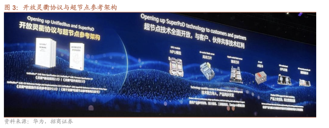 超节点技术全面开放,与客户、伙伴共享技术红利,华为提供包括NPU模组、风冷刀片、液冷刀片、AI标卡、CPU主板、通算级联卡等多种产品,通过技术能力导入和产品同步开发提供产品参考架构、设计规范等,支持产品上市,联合营销拓展。