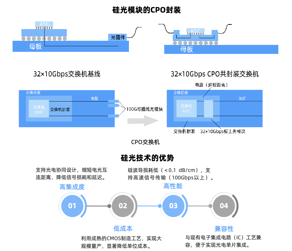 外置CW光源方案可以进一步应用于CPO等新兴场景,通过将光引擎与电芯片共封装,实现更高密度的光互连。