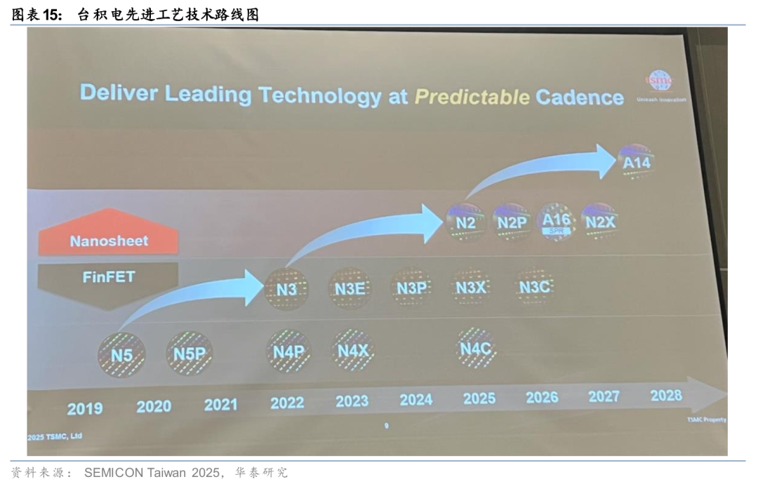 先进制程领域,我们在2025 SEMICON Taiwan与台积电、ASML、AMAT、KLA、LAM、TEL等企业进行了深入交流。通过这些交流,我们看到以下行业趋势: