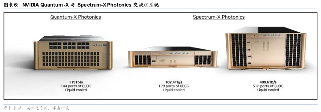 2025年3月,英伟达发布支持CPO的以太网交换机Spectrum-X Photonics和Infinite Band交换机Quantum-X。根据英伟达官网,通过消除传统的电和可插拔架构带来的瓶颈,CPO系统能够提供现代 AI 工厂所需的高性能、高能效与高可靠性。