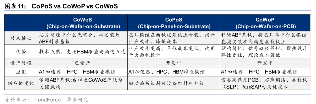 此外,我们注意到CoPoS(Chip-on-Panel-on-Substrate)、CoWoP (Chip-n-Wafer-PCB)等日益受到国内外投资人关注。