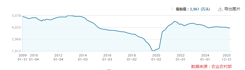 这意味着要在2025年末的基础上,再减少近8%的能繁母猪存栏量,而这一目标很难在短期内达成。