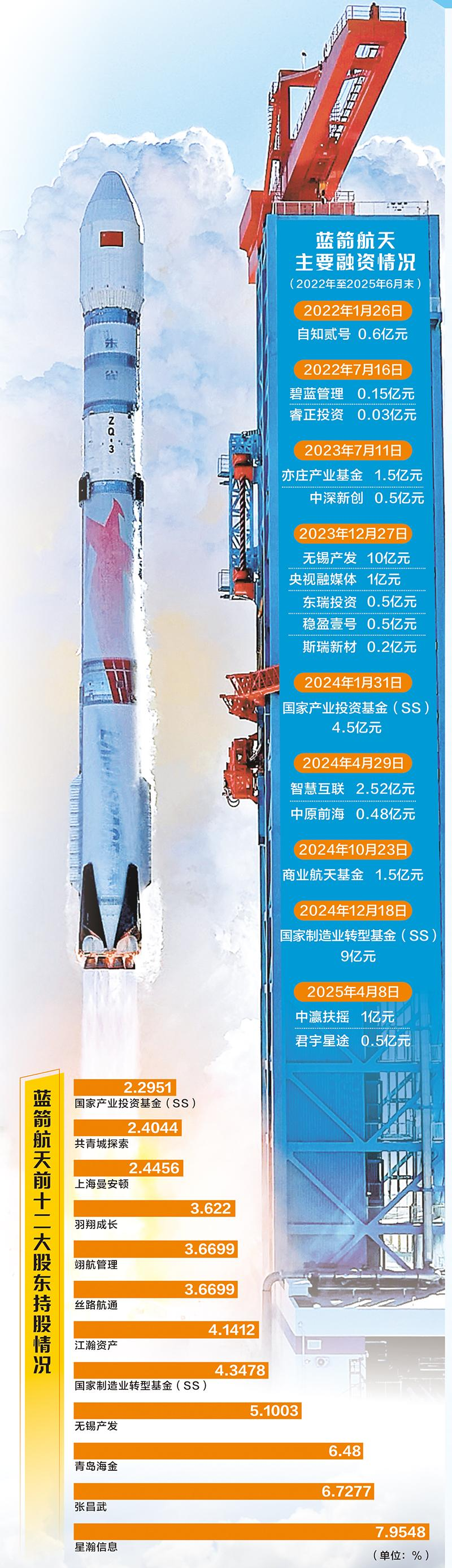 这次成功发射,让蓝箭航天成为投资机构争抢的“香饽饽”。有业内创投人士向记者透露,从这一阶段起,陆续有国资背景基金入股。记者梳理发现,2023年7月至2025年12月,蓝箭航天共有7次增资,亦庄产业基金、无锡产发、国家产业投资基金、商业航天基金、国家制造业转型基金等均是这一阶段入股,其间还有9次股权转让。截至招股书申报稿披露时,蓝箭航天股东中共有78名备案的机构股东。其中,最大的机构股东为基石资本,旗下基金合计持有约6.31%股权。