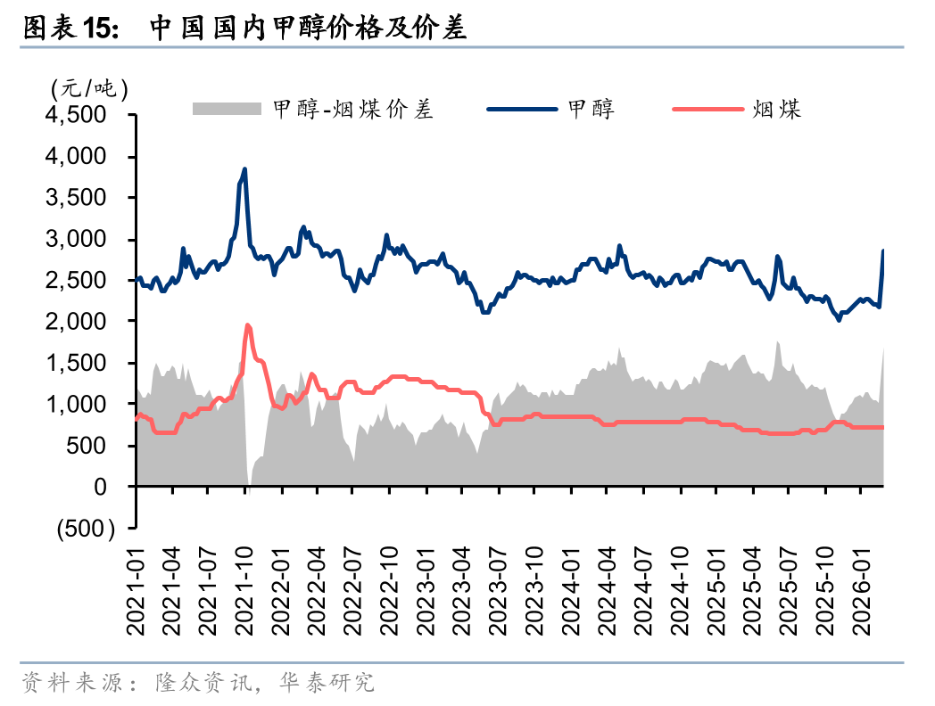 对中国而言,进口甲醇减少主要影响华东地区的甲醇供需,并已引发华东区域醋酸、DMF等甲醇下游产品的价格上涨。3月18日甲醇/醋酸/DMF价格2460/3010/5300元/吨,较2月底上涨13%/16%/30%。由于2月中国国内甲醇开工率82%,富裕产能充足,且国内煤价低波动下西部地区煤制甲醇成本影响相对较小,我们认为中国甲醇供给韧性较强,推荐沿海甲醇生产企业。对除中国外的东亚和东南亚国家而言,甲醇供应缺口亦将导致生物柴油成本上升。