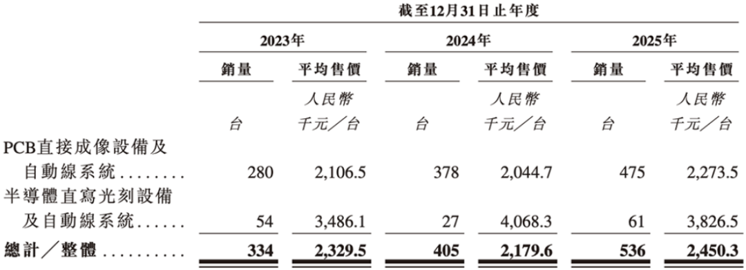 具体而言,PCB直接成像设备及自动线系统在各个报告期内的营业收入分别为589.8百万元,772.9百万元,1079.9百万元,半导体直写光刻设备及自动线系统营业收入分别为188.2百万元、109.8百万元及233.4百万元,分别占各年度营业总收入的22.7%、11.5%及16.6%。
