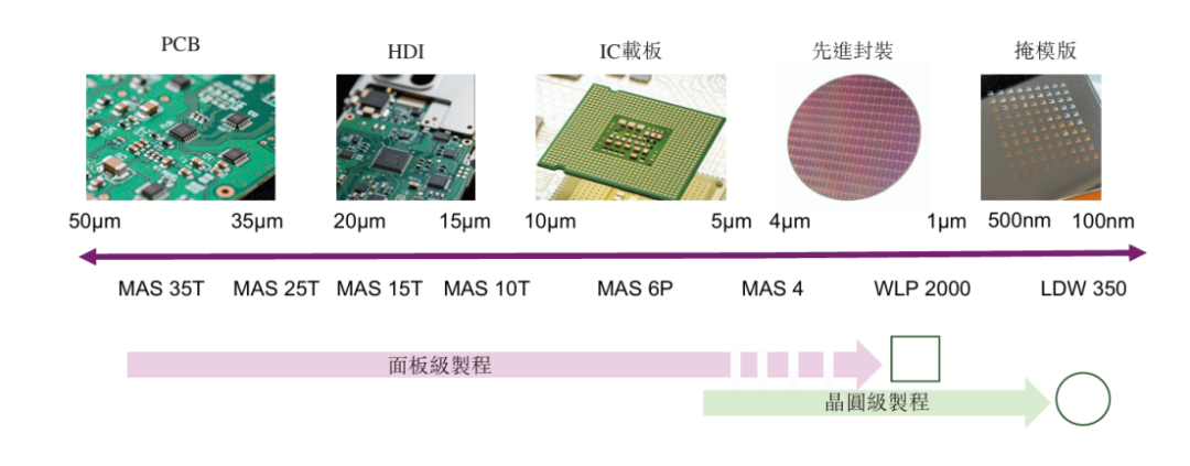 芯碁微装的设备在最小线宽、产能及对位精度方面可达致具竞争力的水平。其中,MAS 4型号可实现4μm的最小线宽,满足IC载板制造的严格要求。MAS 35T独立系统在最小线宽为35μm及对位精度为±12μm的情况下,产能可达每小时480片;而MAS 15T独立系统在最小线宽为15μm及对位精度为±8μm的情况下,产能可达每小时360片。