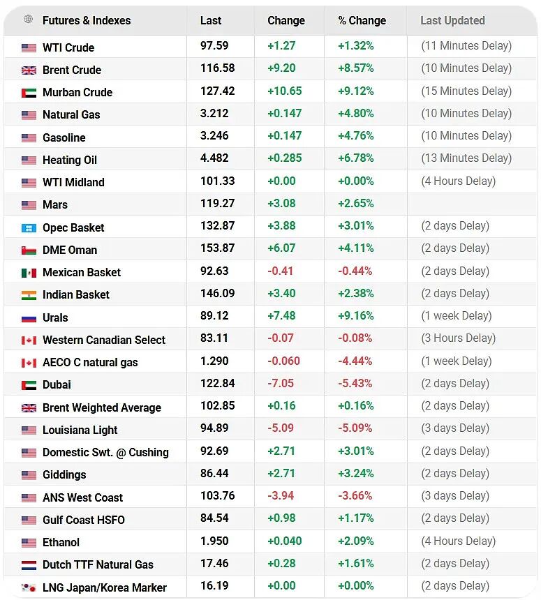 而美国WTI原油(97美金每桶)和OPEC(133美金)原油价格差距也在不断拉大,已经达到了30% ,