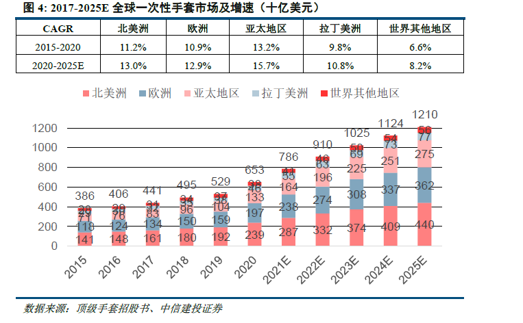 近年来全球一次性手套市场增长稳定,丁腈手套增速相对领先