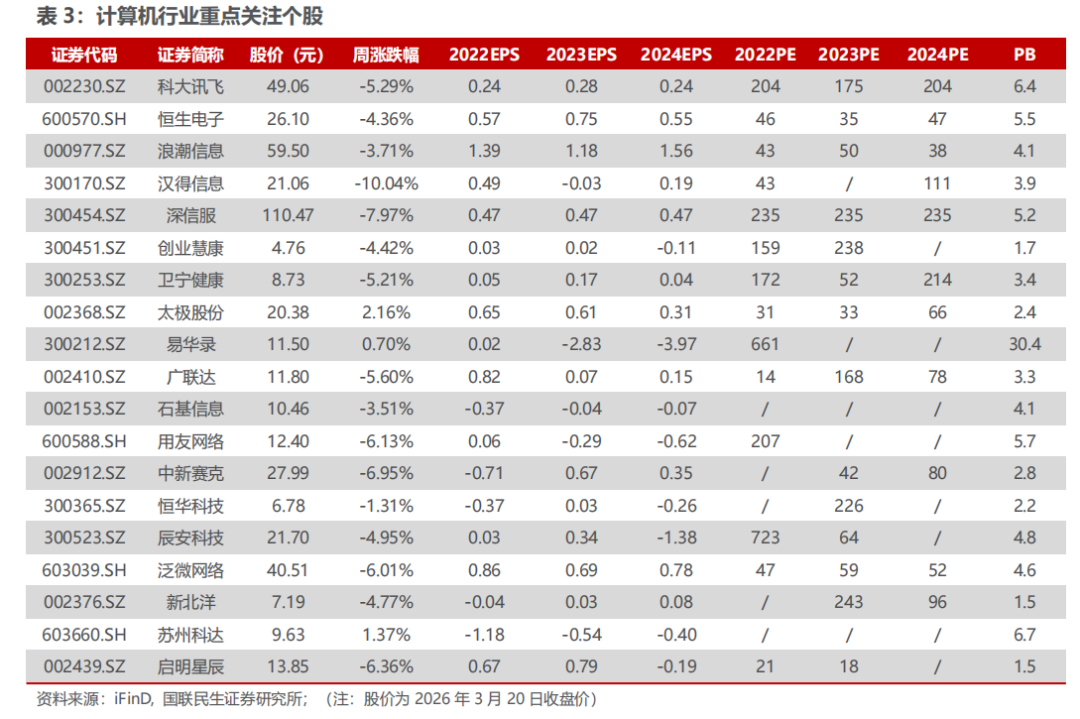 参考计算机整体的行业发展情况、各个下游行业景气度情况、以及公司自身的发展阶段,我们对部分重点公司2026年一季度业绩进行预测:
