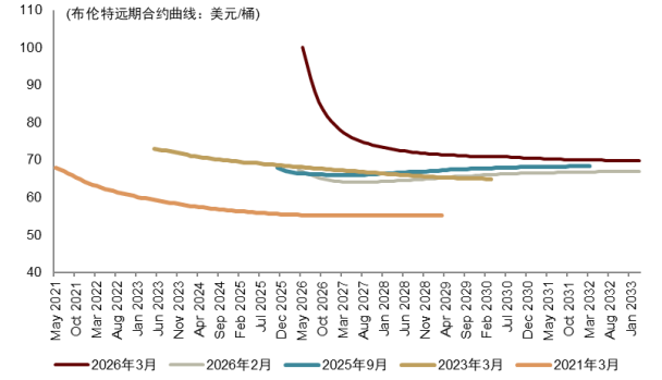 图表:市场远期油价预期的抬升趋势