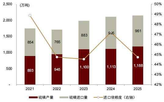 图表:我国硫磺进口依赖度较高